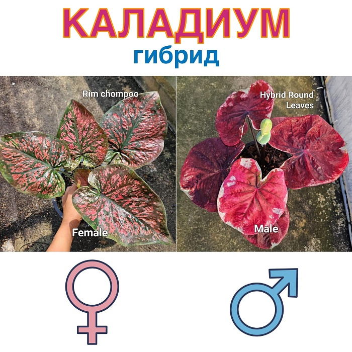 Каладиум гибрид Rim Chompoo x Гибрид круглолистный FE семена 5 штук