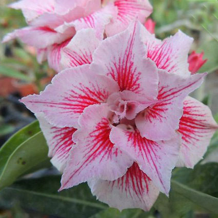 Адениум обессум Sparkler. Лепестки от светло-розового до алого цветов.