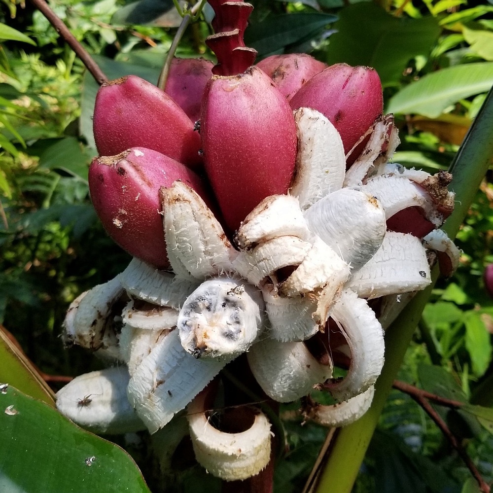 4. Использование: В отличие от коммерческих сортов бананов, Musa velutina не имеет значительной экономической ценности. Однако его красочные цветы и плоды делают его популярным среди садоводов и цветоводов как декоративное растение.