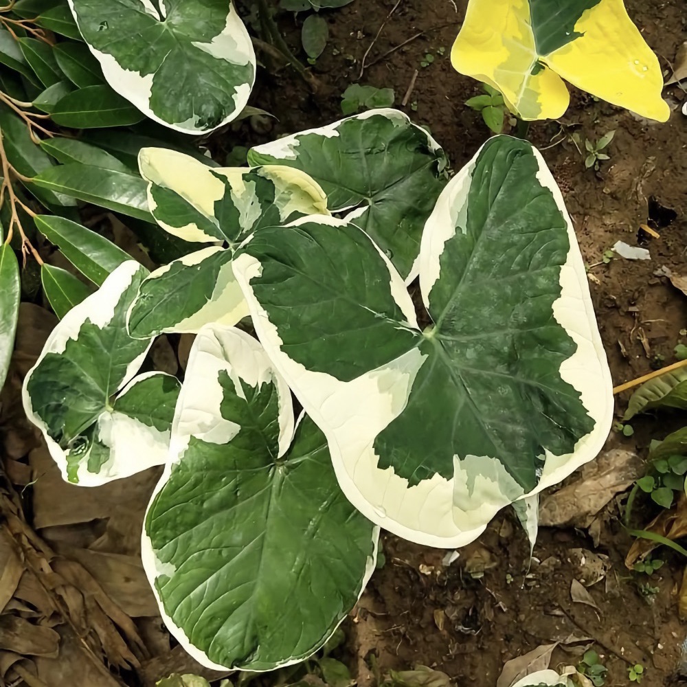 Экзотическое декоративное растение с крупными сердцевидными листьями, украшенными яркими белыми и золотистыми пятнами. Алоказия Микки Маус (по-тайски — «Золотой мешочек») ценится за уникальную окраску и символику богатства и удачи в доме.