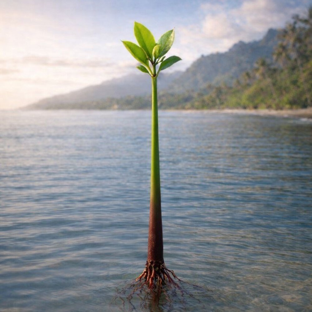 Ростки мангров с гавайских островов имеют толстый стебель, они высокие с мощными корнями.<br>